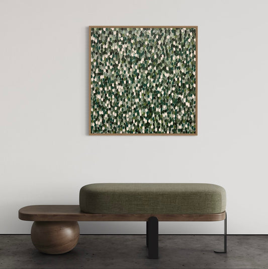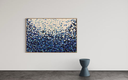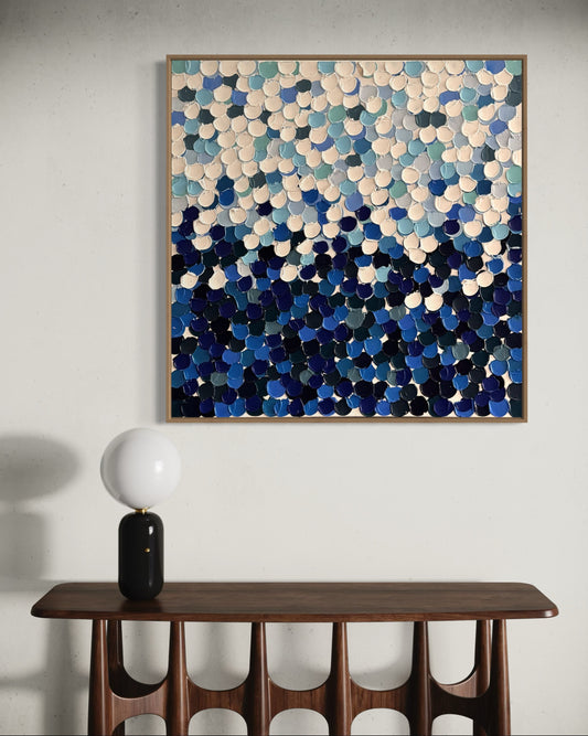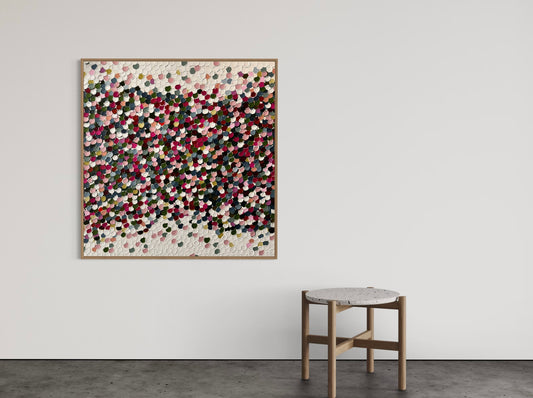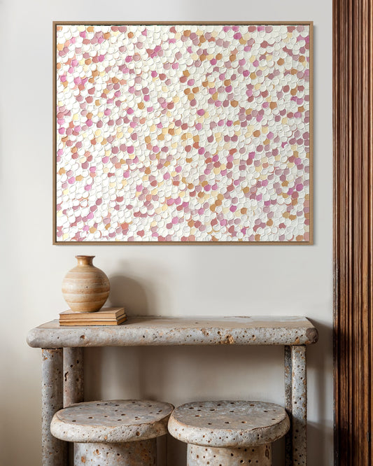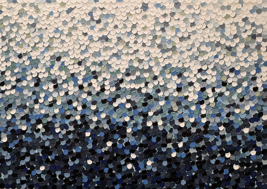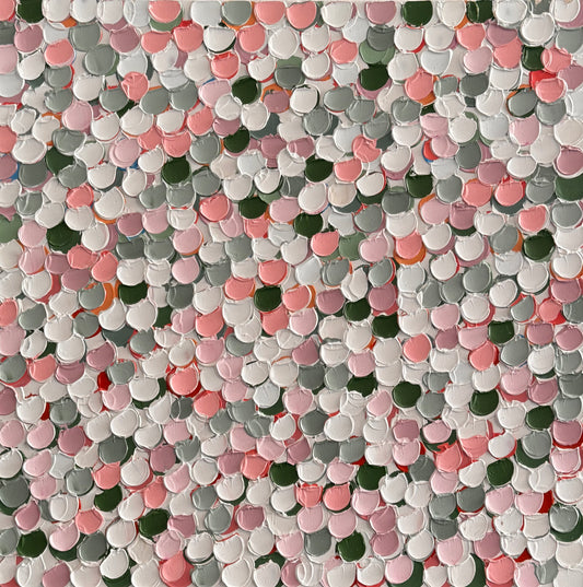 My "Pebbles" series was originally inspired by a family holiday to the coral coast of Fiji where I was so drawn to the coastline full of pebbles of various textures, colors and sizes and this soon developed into a series of Pebble paintings. Each painting features my signature textured dots and are available in various color palettes and compositions.