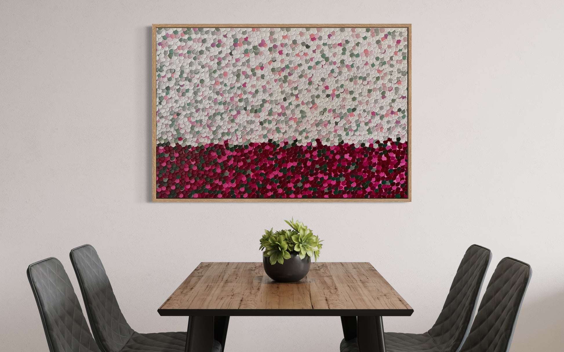 “Pink and Sage Snowstorm” - 100 x 150cm